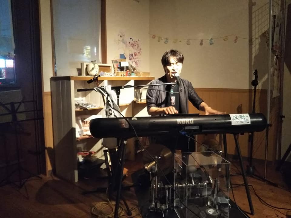 お客さんからキーワードを聞いて、即興のコード進行並べて、即興でお題に沿った歌を作って披露するという、すんごい即興演奏・・・。